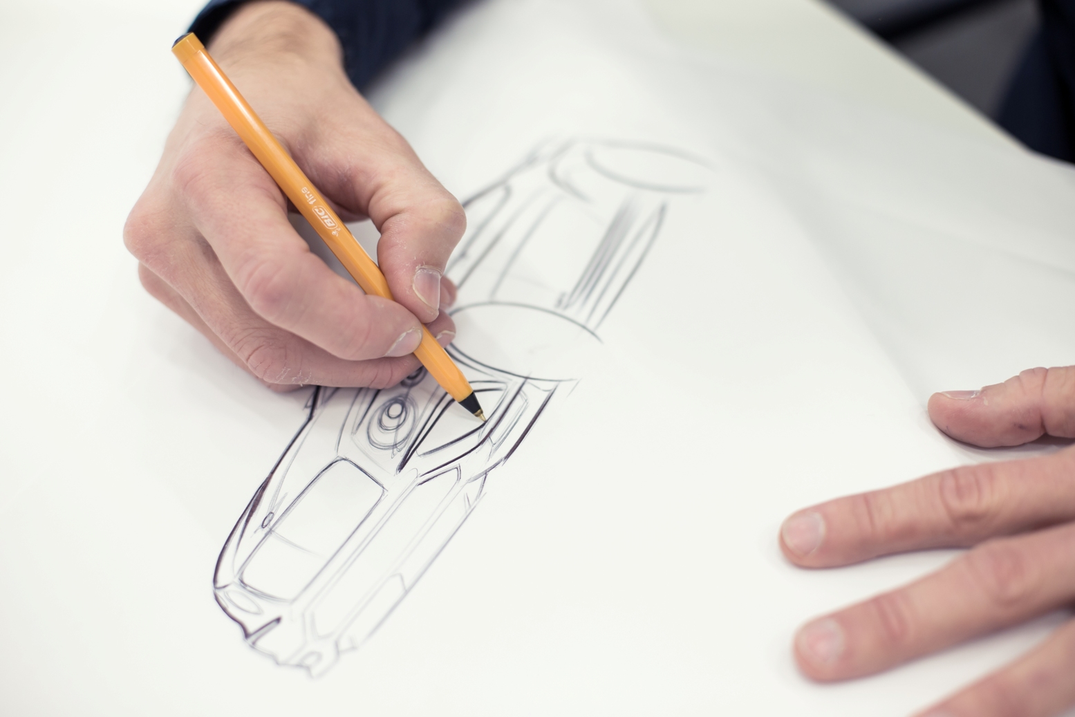 “I prefer to sketch with pen on paper. Firstly, it’s important to lay the foundations with the wheel position. It helps to get the proportions right for the rest of the car.