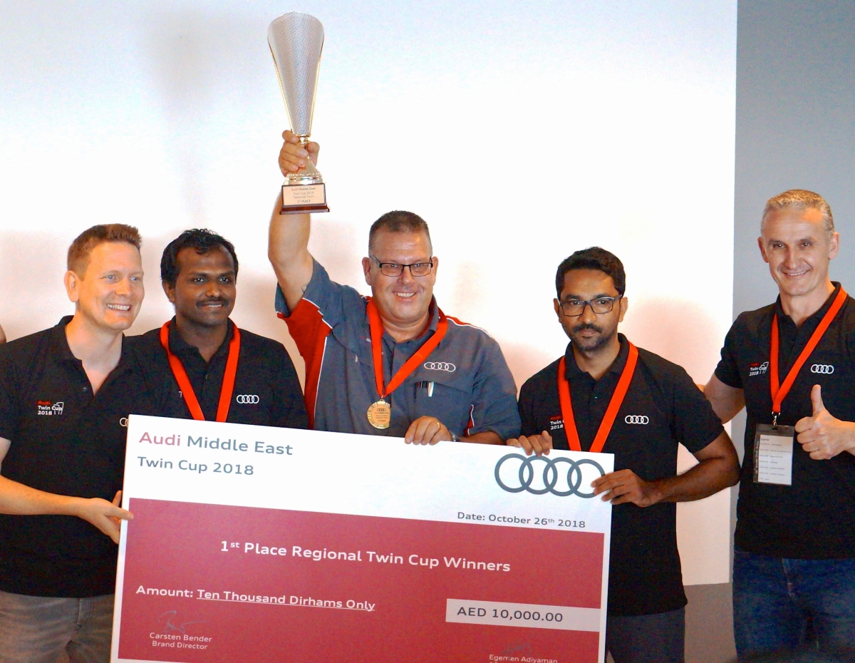 The Audi Twin Cup final was held at the Dubai Autodrome, where the qualified teams were challenged to a full day of activity that tested their theoretical knowledge, hands-on technical ability and customer handling skills according to Audi global standards, as a team and as well as individuals. The winning teams in both the Service and Technical categories were from Audi Service Centre Ali & Sons Abu Dhabi. In the Service category, 2nd and 3rd place were awarded to Audi Al Nabooda Dubai and in the Technical category, 2nd place was awarded to Samaco, Jeddah (KSA) and 3rd place to another team from Ali & Sons, Abu Dhabi.