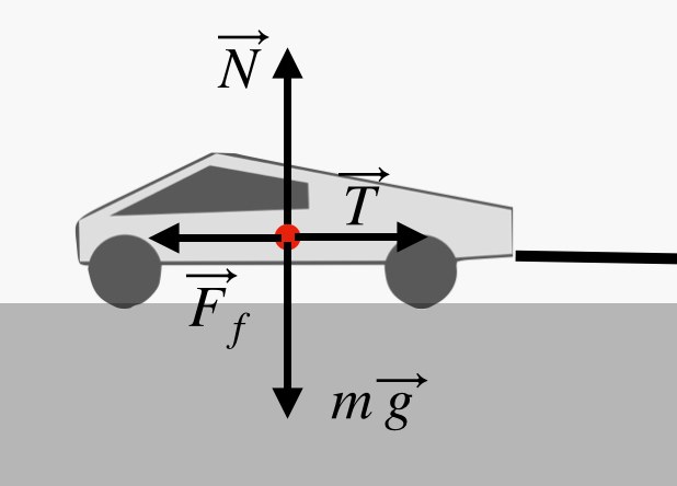 In the video, the Cybertruck has a rope attached to it. This rope pulls with some tension force to the right, and the friction between the Cybertruck’s tires and the ground push to the left. The frictional force must be at least a little bit greater than the backwards-pulling tension, so that the truck can accelerate (and start to move). But here you can see the key point. More mass means a greater normal force, which in turn produces a greater frictional force. Mass matters.